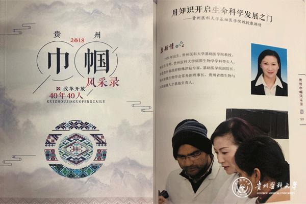 导读:为庆祝改革开放40周年和凝聚女性力量助力脱贫攻坚,贵州省在各行业内评选出了40位杰出女性代表,万象城官网基础医学院教授康颖倩有幸入选,成为“改革开放40年40人——贵州巾帼风采录”杰出女性代表,并参加了省委宣传部、省妇联及省妇儿工委办在贵阳召开的庆祝改革开放40周年暨“凝聚女性力量·助力脱贫攻坚”主题分享会。让我们一起来了解她的个人事迹。