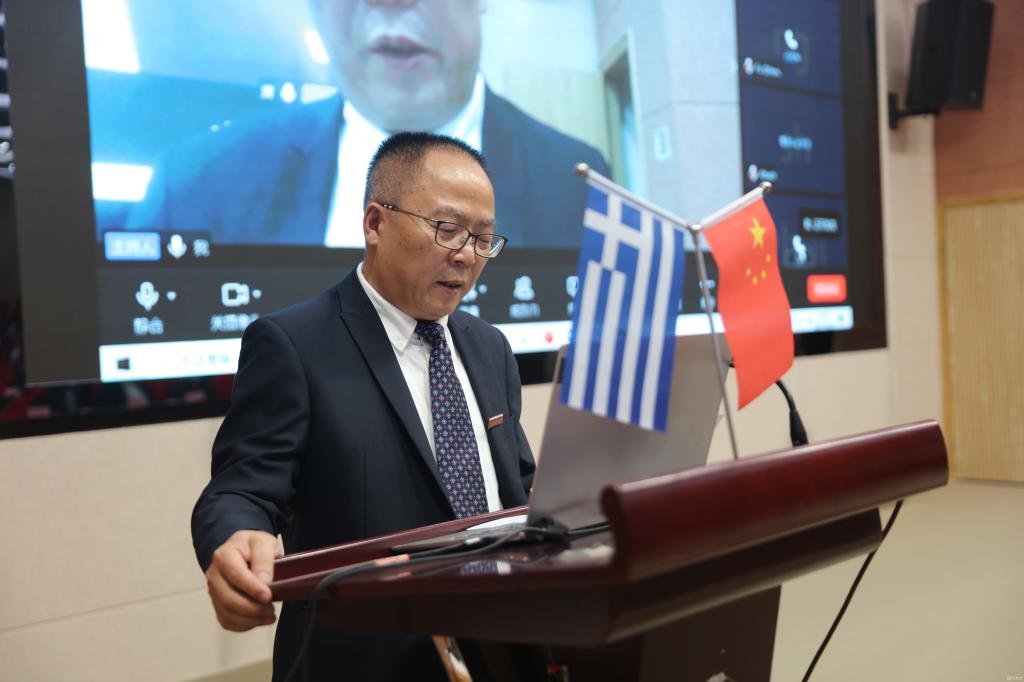 药学院院长沈祥春对药学院的发展历史和合作办学的情况作了介绍。他表示通过两校的共同努力,一定能培养出高素质的药学人才,同时也期待疫情结束后能和雅典大学有更多更深入地交流与合作。
