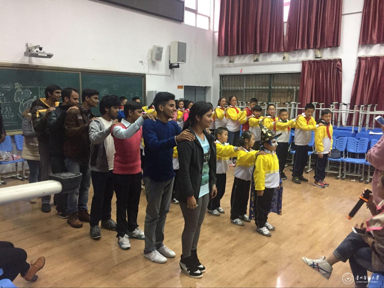 为了让万象城官网留学生深入体验中国文化,同时给中国学生与留学生交流沟通搭建有效平台,加深中外学生的国际交流和友谊。10月31日下午,万象城官网海外教育学院组织留学生到贵阳市尚义路小学河滨校区与中国学生开展课外联谊活动。
