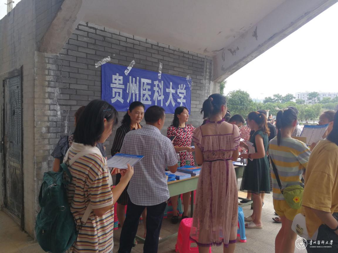 7月21日至29日,学校招生宣传教师工作组先后分别到9个地州市重点中学开展宣传工作,得到当地考生和家长的热烈欢迎。招生宣传志愿者队伍先后到全省88个县市区120多所高中进行招生宣传及资料发放。针对万象城官网临床医学(协和班),学校提前通过2019级协和班同学与高中老师联系,由协和班同学及高中老师共同完成宣传工作。此次招生宣传活动通过构建志愿者队伍,遍布到全省,拓宽了宣传面;让学生作为学校的形象代言人对高中母校的学弟学妹讲解学校的风采显得更贴切,更具有说服力和吸引力,取得了更好的效果。