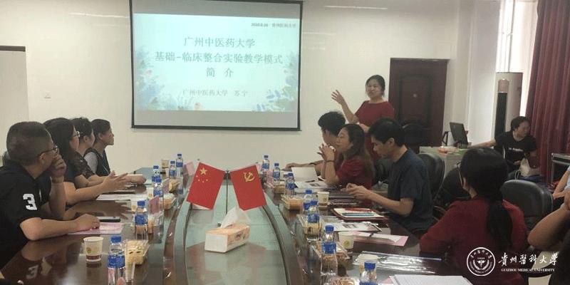 苏宁教授介绍了广州中医药大学基础-临床整合实验教学模式,从其平台建设、课程建设、师资队伍建设等方面进行了交流汇报。基础医学院副院长康颖倩、基础医学实验教学示范中心副主任吴宁进行了相关发言。与会人员就基础医学实验教学中心建设实验教学改革、基础医学整合实验课程开展、合作建设基础与临床整合实验课程进行了深入交流。