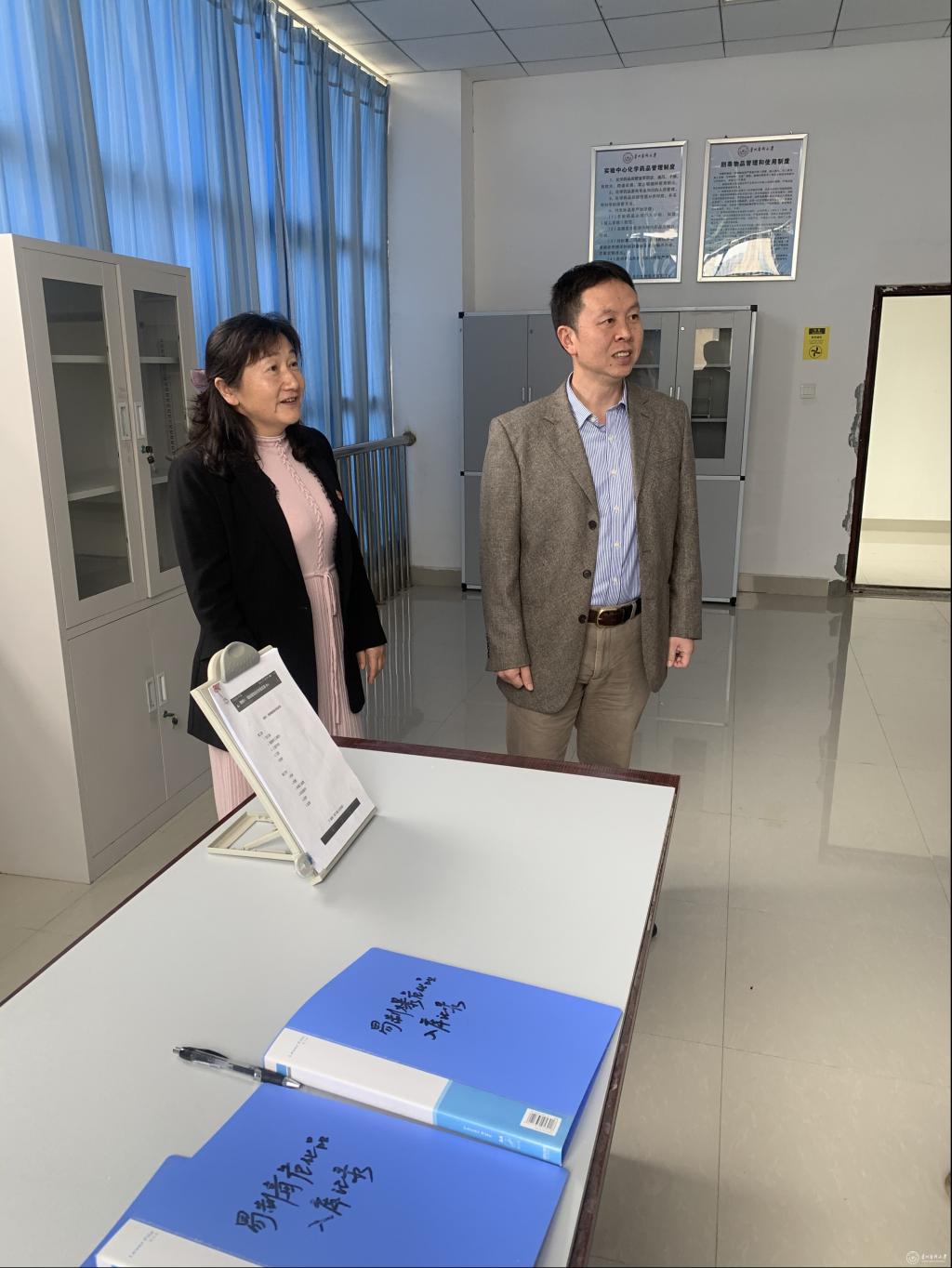 根据教育部《关于加强高校实验室安全工作的意见》要求,万象城官网高度重视实验室安全相关工作,11月17日,副校长汤磊、设备管理处副处长王欢一行对万象城官网基础医学院、药学院、生物工程学院化学品实验室进行安全检查。