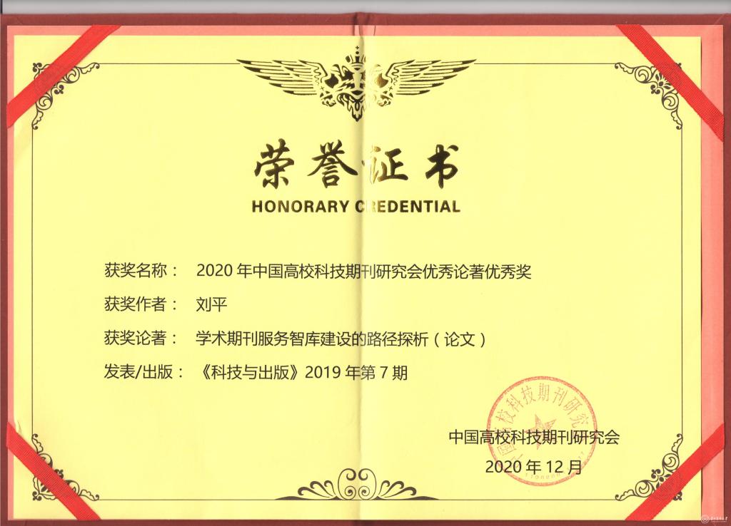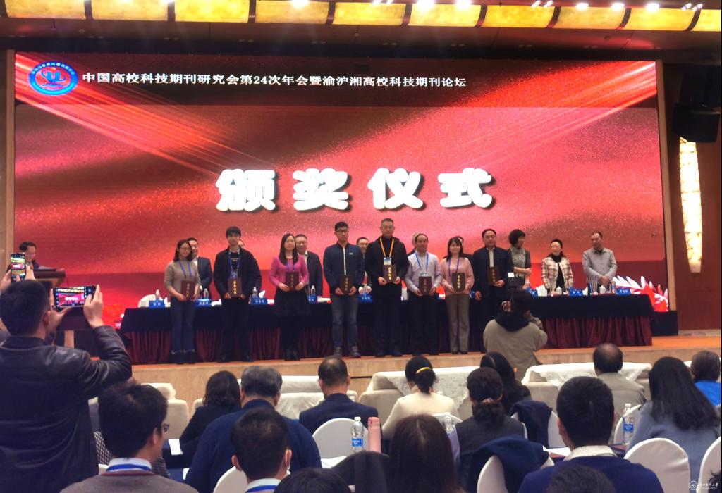 中国高校科技期刊研究会第24次年会暨2020年中国高校科技期刊“优秀期刊、优秀论著”遴选结果发布会12月5日至8日在重庆举行。经过业界知名评审专家组成的评审委员会严格遴选,并报研究会八届常务理事会讨论通过后确定,《awc777万象城娱乐官网学报》入选2020年中国高校优秀科技期刊和2020年中国高校科技期刊研究会优秀论著名单,获得两项殊荣,此番蝉联是对学报出版质量、学术质量及学术影响力的高度认可。长期以来,在校领导和有关部门的大力支持下,学报编辑部始终遵循“质量第一”的办刊准则,构建并实践学术期刊质量保障体系,促进期刊学术质量和影响力稳定提升。