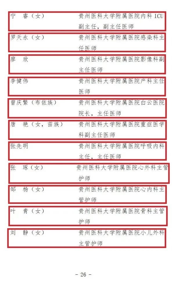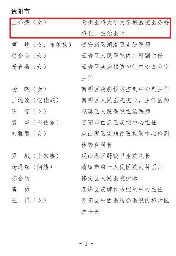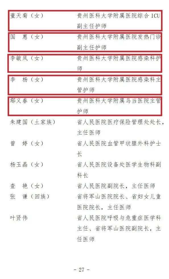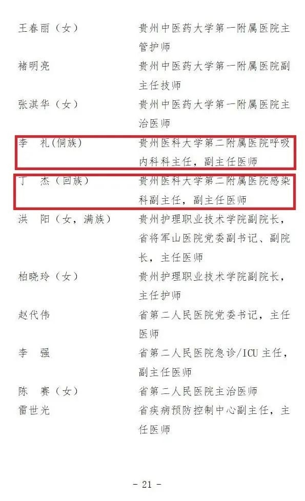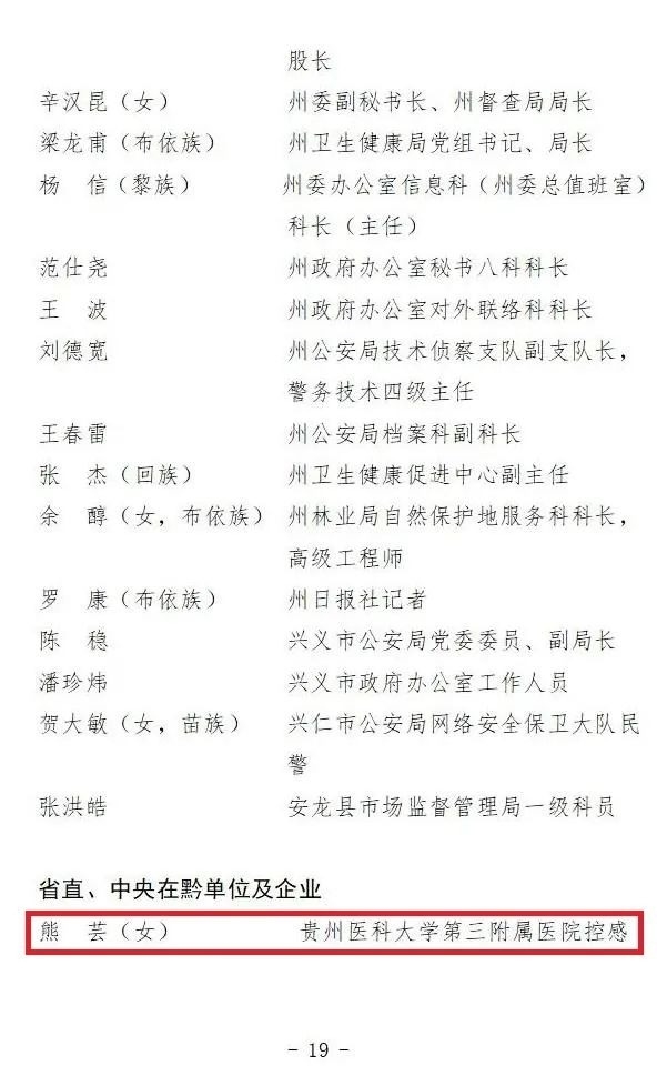 贵州省抗击新冠肺炎疫情先进个人名单