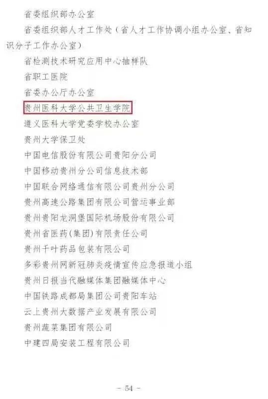 贵州省抗击新冠肺炎疫情先进集体名单