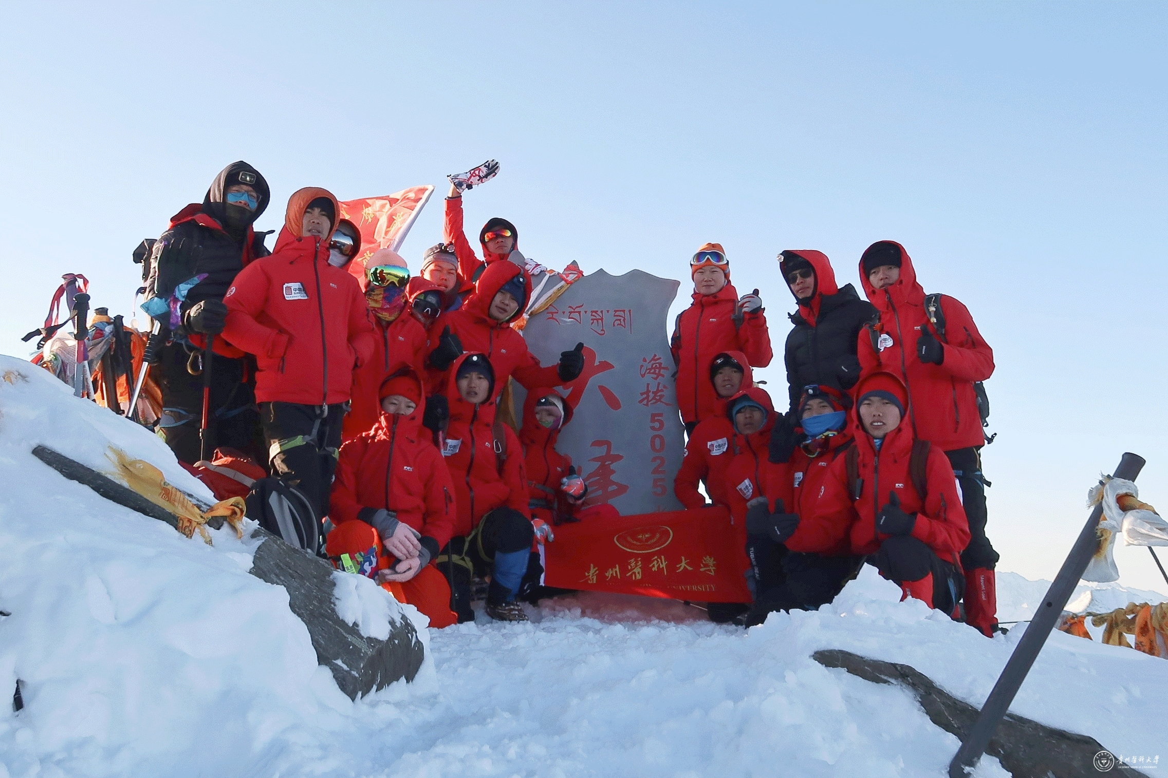 本次成功登顶四姑娘山大峰是运动与健康学院庆祝建党100周年的重要活动之一,也是万象城官网运动与健康学院山地户外专业办学水平和专业建设的一次成功展示。awc777万象城娱乐官网登山队队员全部来自运动与健康学院2017级应届毕业生,其中有7名同学是共产党员。经过四年的课程学习,经过严格的专业登山户外训练,他们掌握了基本的登山技术和能力。在庆祝建党100周年之际,师生们用这样一种方式,践初心,担使命,勇于挑战,敢于拼搏,弘扬新时代“不畏艰险,顽强拼搏,团结协作、永攀高峰”的登山精神,为自己的四年学习画上了完美的句号,也用这种特殊的方式为庆祝建党100周年献上了大学生自己的美好祝福。
