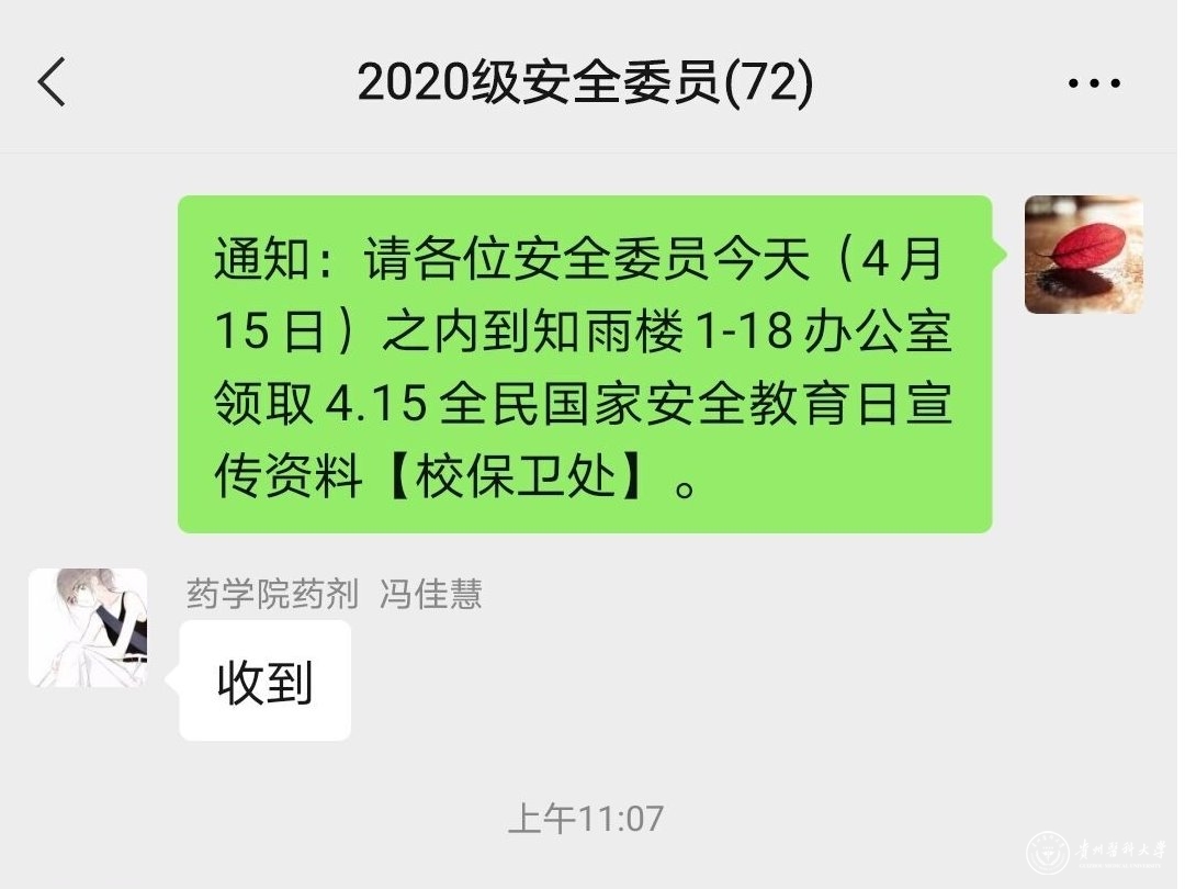 保卫处、关心下一代工作委员会办公室采取线上线下联动宣传模式,制作《4.15全民国家安全教育日》专题宣传片,通过“四级微信工作群”向全校师生推送国家安全相关知识,印制100张有关国家安全的海报,利用校园安全工作宣传专栏、各班级文化宣传墙等载体进行宣传,让师生全面了解国家安全宗旨要点、涵盖内容、涉及领域等。同时,保卫处还组织2019级、2020级9000余名学生进入贵医大•易班“安全微伴”平台进行《国家安全专题微课》课程的在线学习和考试。