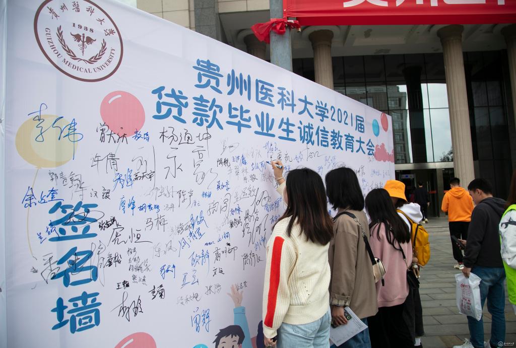 会前,来参会的贷款毕业生在诚信签名墙上签名。