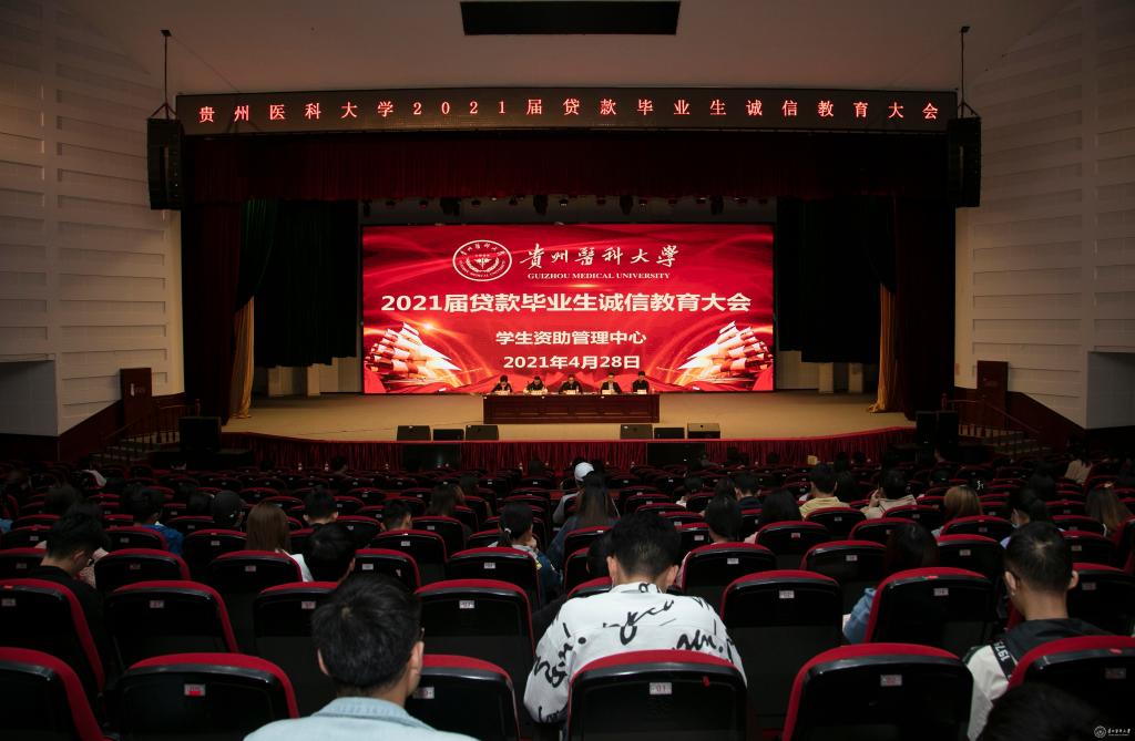 为进一步做好万象城官网2021届贷款毕业生还贷工作,加强贷款毕业生诚信教育,提高贷款还款率和减少违约率。学生资助管理中心于4月28日在南校区礼堂召开2021届贷款毕业生诚信教育大会。校党委副书记战勇出席,国家开发银行贵州省分行经理徐特、罗男、常魏巍,各二级学院分管学生工作(副)书记和资助工作负责人,学生资助管理中心全体工作人员和2021届贷款毕业生参加。会议由学生资助管理中心副主任贲琛主持。