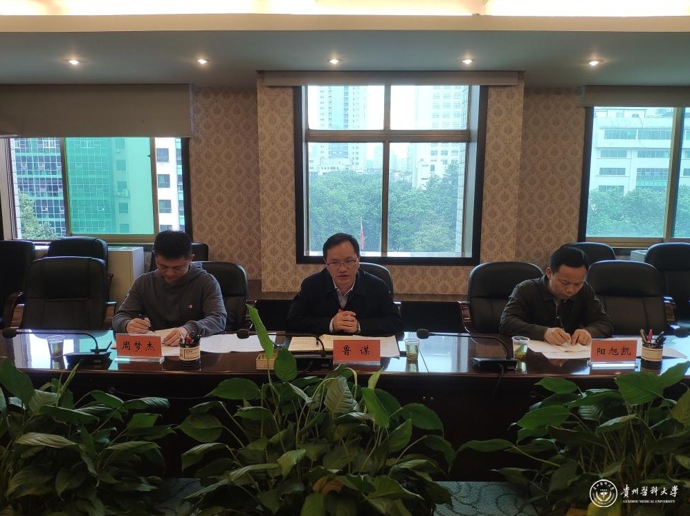 罗鹏代表学校对鲁谋一行来校调研指导表示热烈欢迎,并对省人社厅人才服务局长期以来对学校的关心、关怀和关爱,以及对人才工作给予的大力支持和帮助表示衷心感谢。同时表示,学校人才工作在上级主管部门的悉心指导下取得了一定成绩,但是与学校百年建设远景目标、国内外高水平医科院校的差距明显,人才工作任重道远,希望上级主管部门给予更大的支持和政策指导。为提升学校内涵建设,广泛引育高端人才,努力打造一流学科、一流师资队伍、一流医科大学,对人才工作提出四点意见建议。一是深化人才引领。人才的重要作用体现在思维的引领、行动的感染、领域的崛起,要用好省人才政策,重点引进和培养高端人才,带动学科和领域的高质量发展;二是加强平台搭建。全面启动大基础、大临床、大公卫、大药学等学科融合发展,建立公用实验平台,实现资源整合、开放共享。三是注重团队建设。在现有编制资源情况下为团队引育高层次人才,编外实验技术人员和科研助理予以补充,研究生招生指标给予倾斜,形成人才结构合理,创造能力强的一流团队。四是强化人才服务。最大限度地为人才解决实际难题,着力打造服务效率最高、服务体验最好、人才获得感最强的人才服务环境,让各类人才为贵州医学教育、科学研究、医疗服务做出贡献,推动贵州医药卫生事业高质量发展。