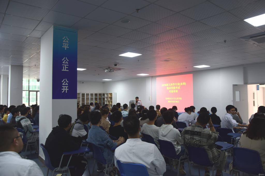 儿科学院在临床技能中心召开了考前培训,儿科学院院长艾戎对此次考试工作方案进行详细介绍及部署,附属医院副院长楚兰对有关工作提出具体要求,技能中心主任田静文详细介绍考试流程及考场分布情况,儿科学院党政领导、相关科室负责人,全体考官及50余名志愿者参加。