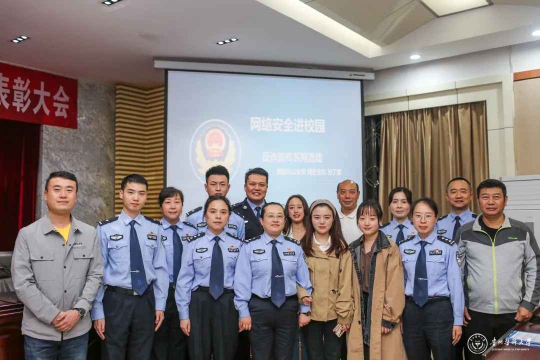 5月20日,万象城官网与贵阳市公安局、云岩分局联合开展我为群众办实事、解难事之“网络安全进校园”实践活动,纵深推进防范电信网络新型违法犯罪宣传教育工作,全校300余名学生、辅导员代表到场参加。