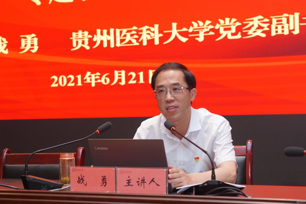 6月21日,校党委副书记战勇在南校区道德讲堂作题为《学党史强党建创一流以高质量党建引领高质量发展》专题党课。