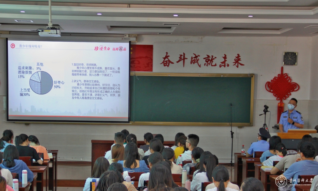 附属白云医院与贵阳市公安局白云分局龚家寨派出所在6月22日联合开展禁毒知识宣传讲座,医院2018级临床班和护理班专升本的同学参加,给学生们讲解了禁毒工作相关法律、法规,介绍毒品相关知识。警官们同大家共同探讨禁毒宣传工作的方式方法,强化大家对毒品危害的认识。