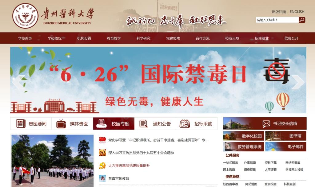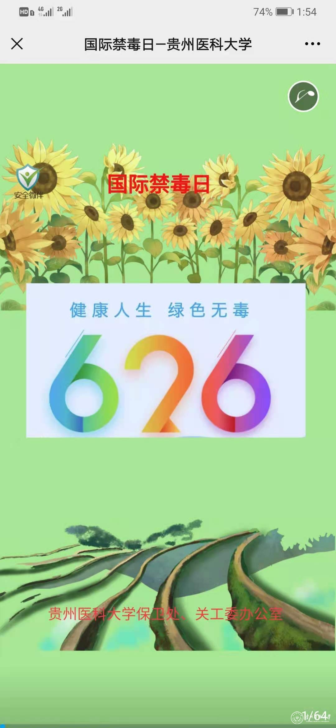 校党委宣传部(精神文明办)在学校官网的校园专题栏目开设“6·26”国际禁毒日宣传版块,发布《中华人民共和国禁毒法》学习专栏、公布“绿色无毒,健康人生”禁毒游戏微信二维码,在专栏内链接禁毒微电影《阳光》、禁毒MV歌曲《一路有你》等内容,供全校教职医护员工生观看、转载和学习宣传。