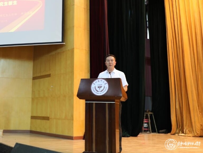 汤磊向各位新同学表示欢迎希望同学们要培养科学研究兴趣、树立学术理想、提升创新能力;要立志做高水平的医师;要加强医德医风修养;要端正学习态度,恪守学术道德;希望同学们保持身心和谐,加强体育锻炼,练就良好的抗压心态,好好学习,平安健康成长为一名高素质人才,为祖国的医疗卫生事业贡献力量。