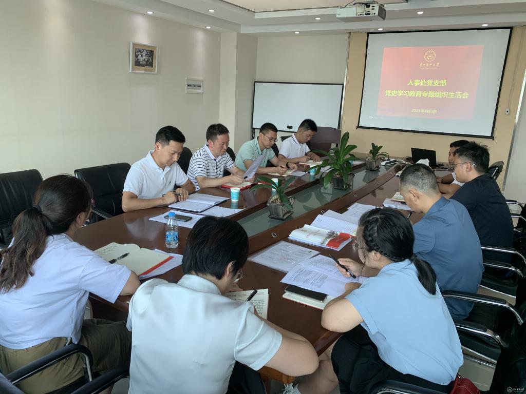 8月3日,人事处党支部在北校区科技楼12楼会议室召开党史学习教育专题组织生活会。副校长汤磊以普通党员身份参加,机关党委副书记陈伟到会指导,会议由人事处党支部书记冯飞主持。