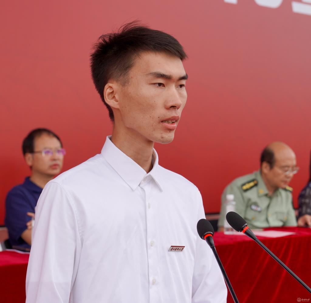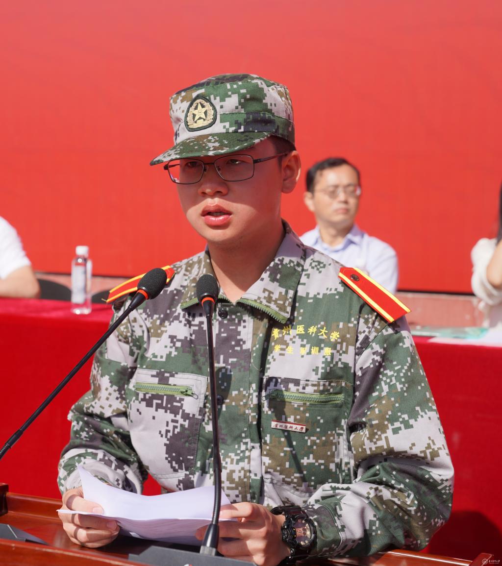 军训教官代表吴勇发言,表示一定圆满完成此次军训任务。