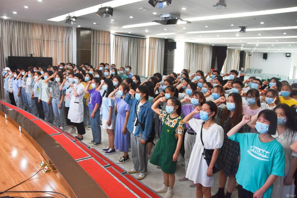 附属兴义医院内科教研室主任廖厚丽带领全体新生重温医学生誓言。