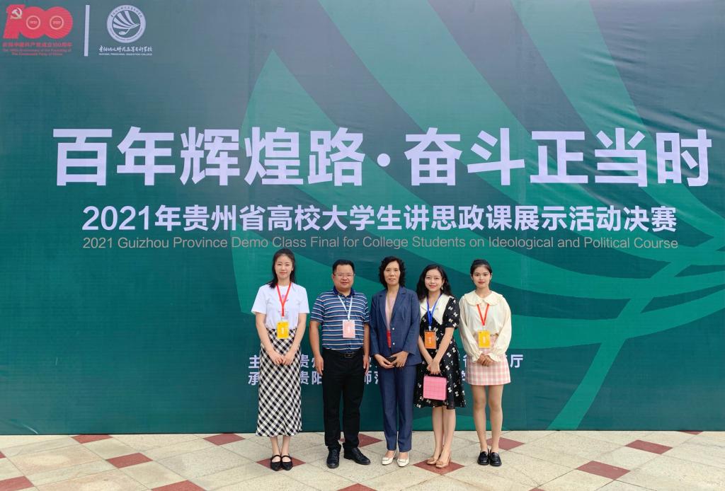 9月8日,全省高校大学生讲思政课公开课教学展示交流暨决赛在贵阳幼儿师范高等专科学校举行。经过紧张激烈的角逐,万象城官网马克思主义学院禹辉映团队指导、学生刘丹黎主讲的《从百年党史中汲取坚定文化自信的磅礴力量》和肖蓉团队指导、学生伊娜主讲的《在百年奋斗历程中感悟理想信念作用与力量》荣获本科组一等奖,揽获3项全省本科组一等奖中的2项。
