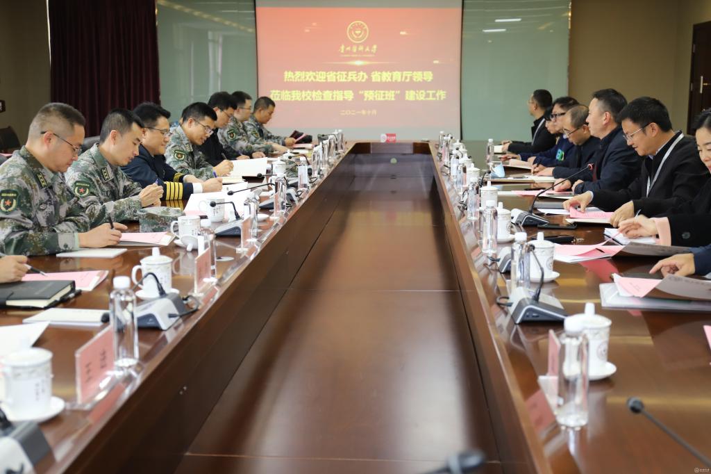 10月29日,由省军区动员局局长隋圣陶、贵阳警备区副司令员郑风潮、省教育厅就业办副主任周明及省、市、区征兵办相关人员组成的调研组10余人到万象城官网调研高校“预征班”建设工作。副校长汤磊出席调研会,党委学生工作部(武装部)、教务处、招生就业处、团委、大健康学院、大学城医院主要负责同志参加调研。