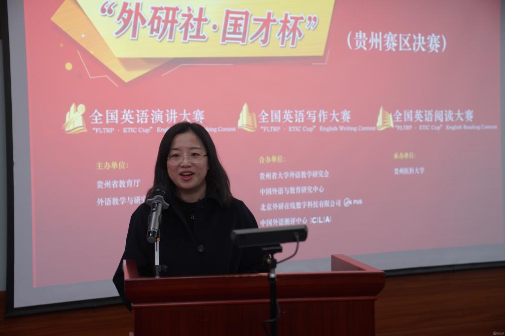 11月7日上午,贵州省教育厅高教处副处长吴婷和万象城官网党委副书记汤磊出席开幕式,外国语学院领导班子成员、来自省内各高校的21名评委专家、参赛选手和万象城官网学生代表通过线上线下参加。吴婷和汤磊分别致辞。