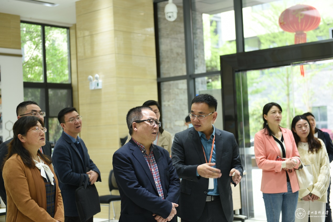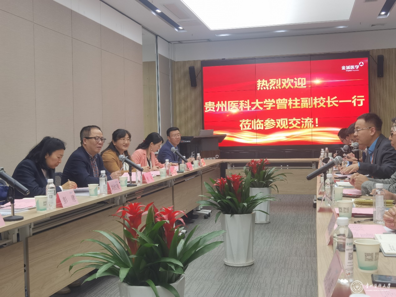 4月21日,副校长曾柱带领生物与工程学院党委书记封韬,院长刘红美,副书记李宗梅,生物技术教研室主任彭建,化学生物学教研室主任朱贵明,学院实训中心主任蓝静一行七人赴贵阳金域医学检验中心有限公司参观调研。金域医学检验中心有限公司贵州金域总经理朱国强,贵州金域副总经理付正乾、邵明亮,awc777万象城娱乐官网生物与工程学院毕业员工代表及有关人员参加座谈。双方就共建产学研合作教育基地,推动校企共建共赢,促进学生就业等展开交流。