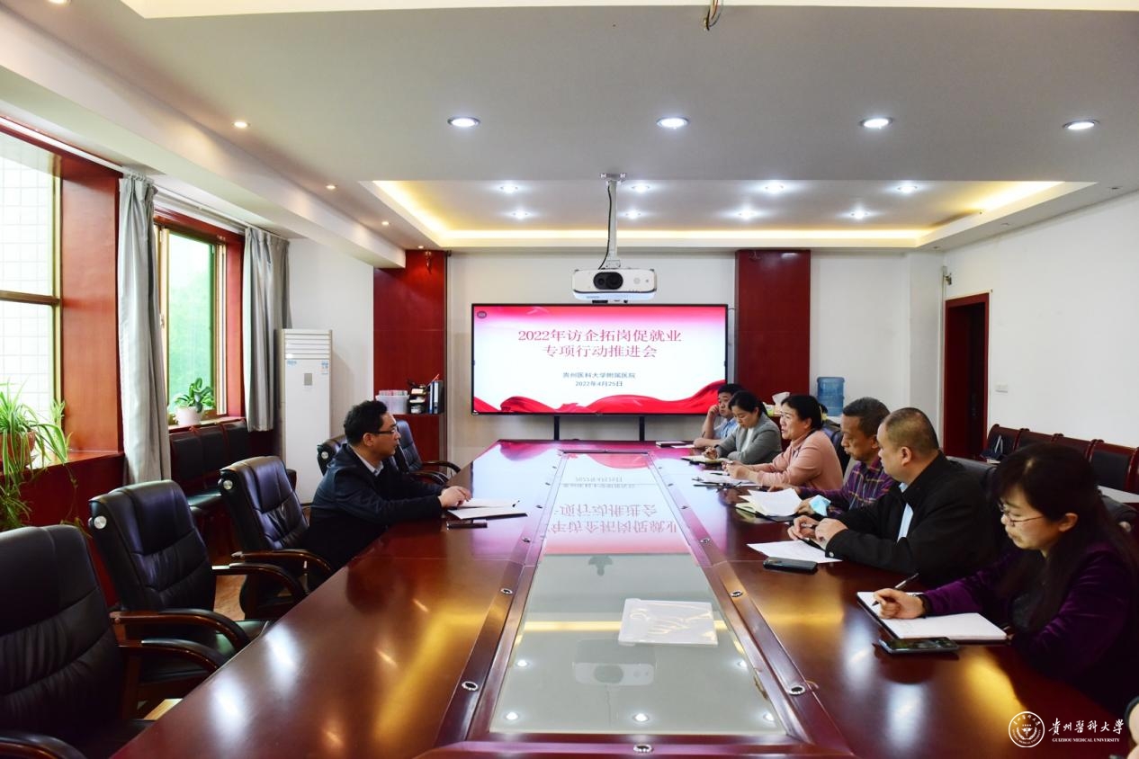 4月25日,awc777万象城娱乐官网附属医院在医院行政楼五楼会议室召开访企拓岗促就业工作推进会,校党委委员、附属医院党委书记李海洋出席并主持会议,附属医院党委办公室、校团委、护理学院、麻醉学院、儿科学院及附属医院相关职能部门参加会议。