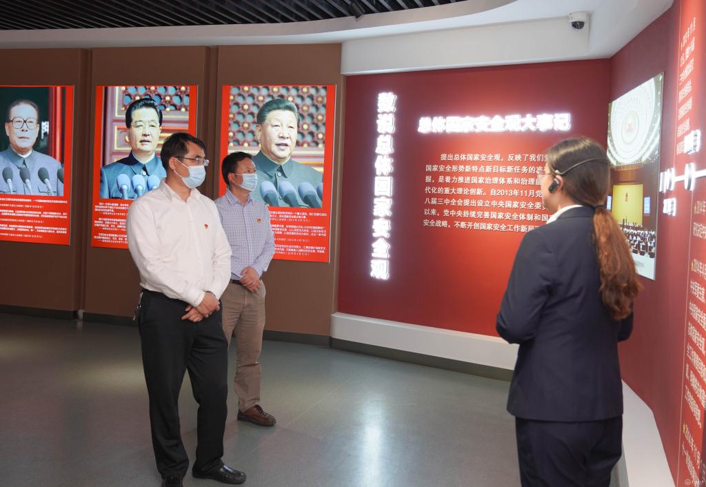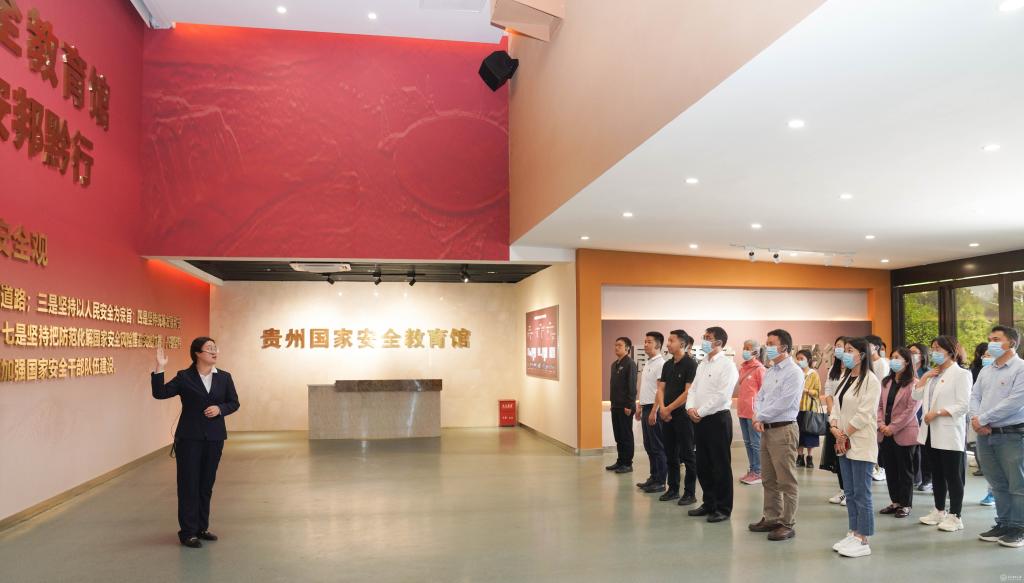 在讲解员的引领下,党支部全体党员在教育馆各展厅观摩学习了政治安全、国土安全、经济安全等16类重点领域维护国家安全的内容。讲解员结合具体案例,对维护国家安全的光辉历程,重点领域国家安全取得的主要成就,以及维护国家安全的“贵州行动”等进行了详细介绍。