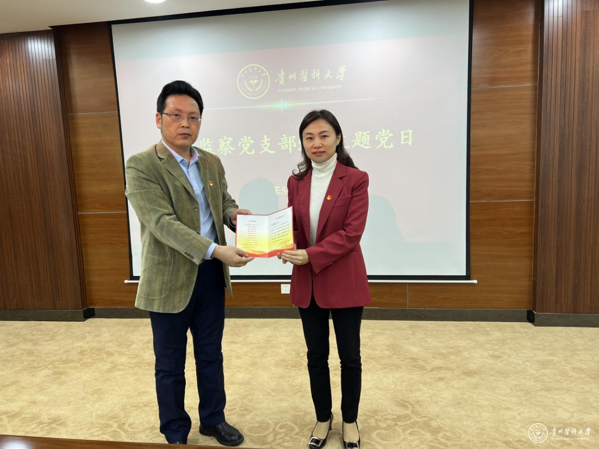 5月23日,校党委委员、省纪委省监委派驻校纪检监察组组长陈代勇以普通党员身份参加纪检监察党支部以“学习党代会精神汲取奋进力量”为题的主题党日活动。会议由支部书记李道群主持。