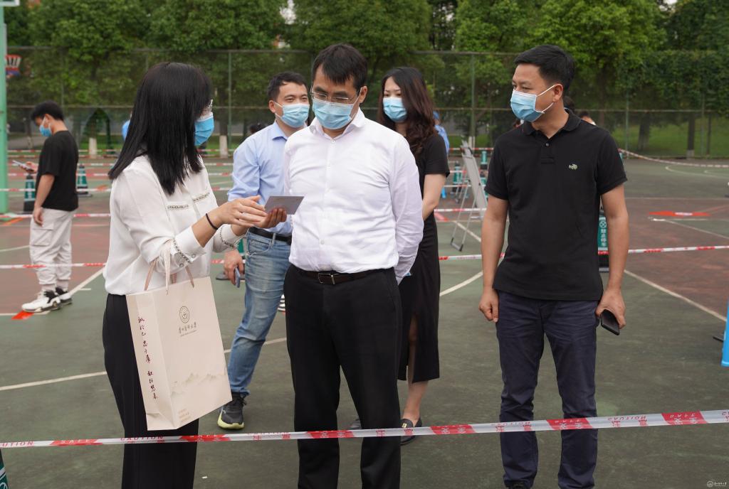 近日,学校组织师生在南校区西区篮球场进行核酸检测,校党委副书记、校长罗鹏到核酸检测现场指导工作,校长办公室、基建处相关负责人参加。
