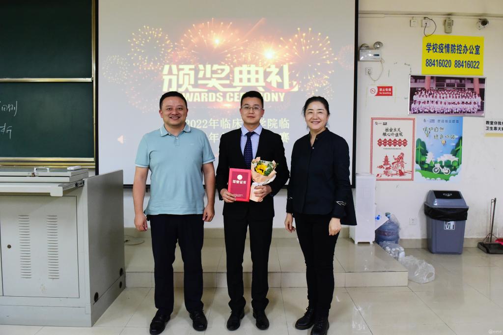 经过紧张角逐,妇产科学教研室潘莉娜获特等奖,神经病学教研室蔡刚获一等奖,感染病学教研室李璨、重症医学教研室付建宇获二等奖,眼科学教研室李冰、针灸推拿学教研室孙苏闻、全科医学教研室涂丽获三等奖。