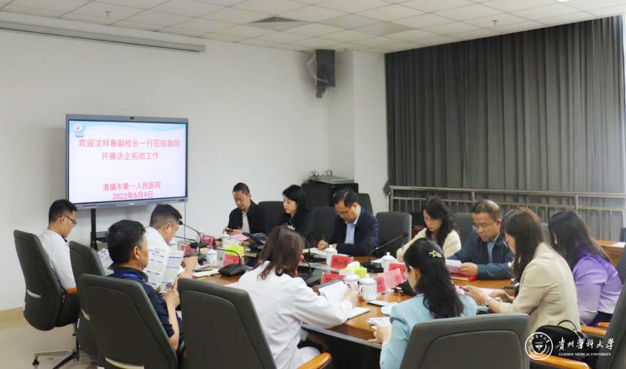 6月9日,副校长沈祥春带队到清镇市第一人民医院进行调研交流,开展“访企拓岗促就业”专项行动。会议由清镇市第一人民医院党委书记苏乙主持,院长周建国,纪委书记王权德,副院长陈兰及相关科室负责人,学校计划财务处副处长杨丽娜、基础医学院党政领导、教学科研管理科负责人及毕业班辅导员参加。