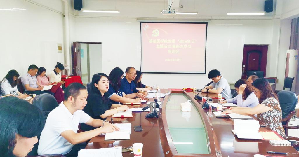 6月27日,基础医学院在务本楼二楼会议室组织开展党员“政治生日”主题活动暨新老党员座谈会。副校长、组织部部长蒋红梅出席,党委组织部组织科科长龙宛苡陪同。基础医学院党委班子、各党支部书记、全体辅导员参加,活动由学院副处级组织员刘亮主持。
