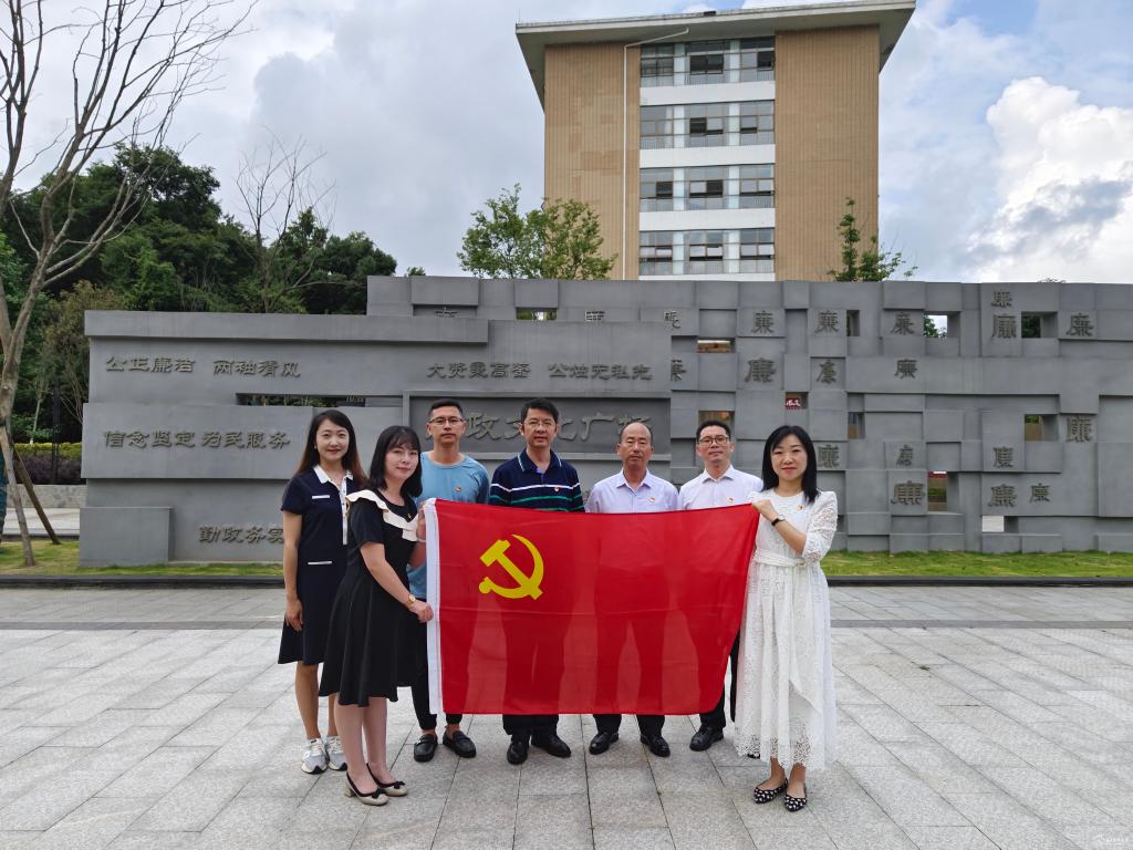 7月1日,机关党支部全体党员在新校区廉政文化广场开展筑牢心中“防火墙”主题党日活动。