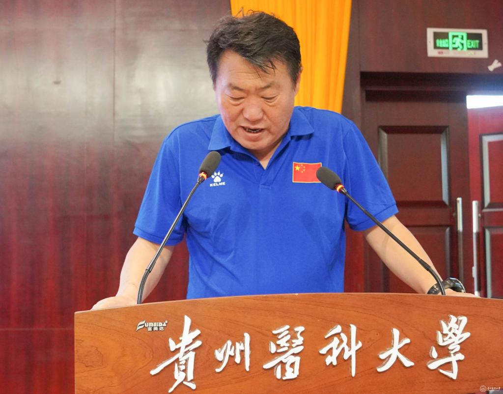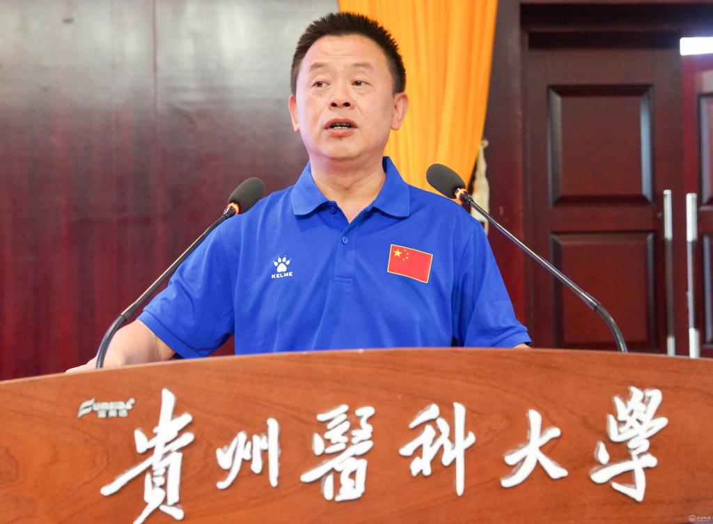 罗鹏对运动与健康学院近年来各项事业的发展以及取得的体育竞赛成绩给予了肯定。他指出,此次主题为“青春献礼二十大 学运之美耀黔中”的贵州省第五届学生运动会,是在全省上下深入学习贯彻省第十三次党代会精神,以实际行动迎接党的二十大胜利召开之际举办的全省学生综合性体育竞赛。罗鹏希望,遵守规则、尊重对手。希望大家认真学习、充分掌握和运用比赛规则,在规则允许的范围内积极追求成功。尊重对手,把他们看作成功道路上的助推器。抓住机遇、超越自我。每一次比赛都是检验实力、提升实力的机会,希望大家珍惜机遇、抓住机遇,力争取得运动成绩新突破,超越过去的自己。拼搏进取、奋勇争先。希望大家增强自信,敢于拼搏,勇于进取,为自身的荣誉而战,也为贵医增光添彩,以优异的成绩回报全校师生的殷切期盼。