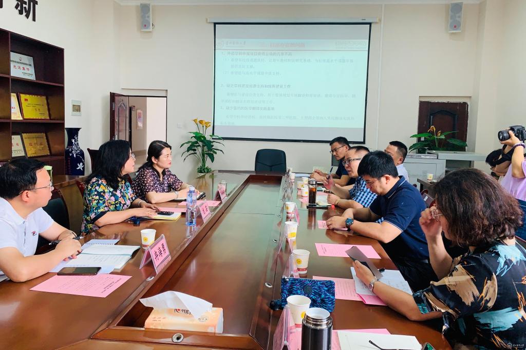 7月12日,副校长曾柱率人事处、教务处、科学技术处、国际交流合作处、教师工作处、研究生院、科技创新与产业发展处等部门负责人及工作人员到外国语学院进行翻译硕士专业学位授权点申报工作调研。外国语学院党政负责人、教研室负责人、博士及翻译专业教师代表参加。