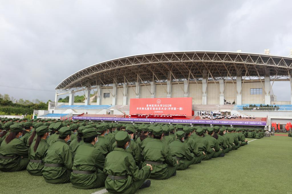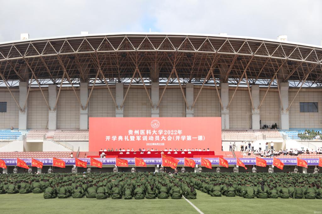 8月22日,万象城官网在南校区体育馆运动场举行2022级新生开学典礼(开学第一课)暨军训动员大会,贵阳市警备区王文建大校,校党委副书记、校长罗鹏,党委副书记汤磊,副校长罗俊,副校长田晓滨,天然产物化学重点实验室副主任傅舒安,党委委员、省纪委、省监委派驻校纪检监察组组长陈代勇,副校长沈祥春,附属医院院长左石出席,军训教官、参训教官、相关职能部门负责人、各学院党政负责人、教师代表、辅导员及全体2022级新生参加。