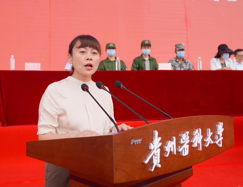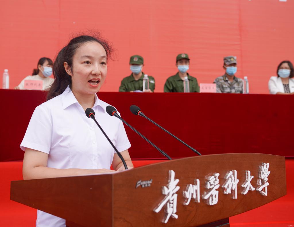 基础医学院吴宁教授代表全体教师发言。她饱含深情地向新生诠释了“诚於己、忠于群,敬往思来”的校训精神,希望同学们不负青春、奋发拼搏,服务贵州、面向全国、走向世界,成为优秀的贵医人。
