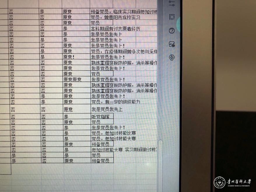 覃达文(2021级公共卫生硕士):我从来没有忘记过自己是一名中共党员,在当前贵阳市疫情防控形势复杂严峻的情况下,我一定会站出来,去到需要我的地方,贡献微薄的力量。我在疾控工作过一年,有一定的经验,同时也会做好防护。这是我真实的感受,也是我心里的声音,党教我的。