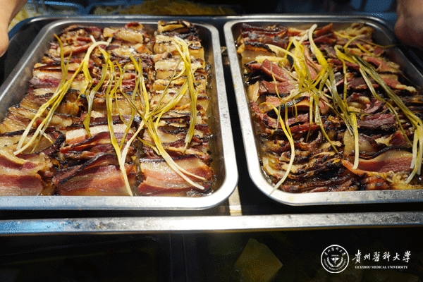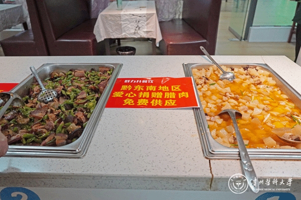 盐菜腊肉、青椒腊肉、西兰花腊肉、土豆腊肉、原汁原味的蒸腊肉……9月25日,学校食堂捐赠供应窗口带来了一顿丰富的腊肉宴,让师生们免费品尝到贵州当地浓浓的家乡味。