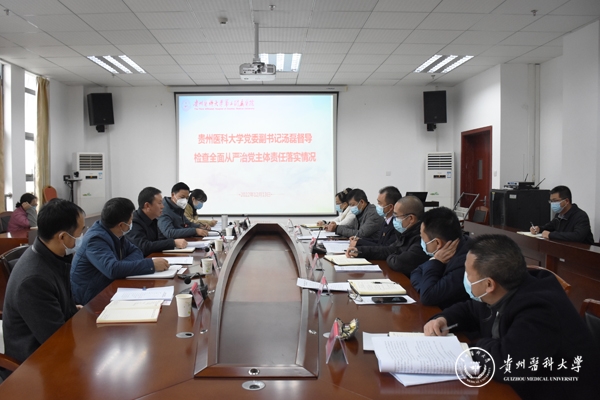 第三附属医院党委书记姚辉就医院2022年度落实全面从严治党工作情况进行了汇报。他表示,医院党委将认真贯彻落实党的二十大精神和省第十三次党代会精神,认真履行全面从严治党主体责任,进一步提高一体推进不敢腐、不能腐、不想腐的能力和水平,以高质量党建引领医院高质量发展,为建设健康贵州、健康黔南作出新的积极的贡献。