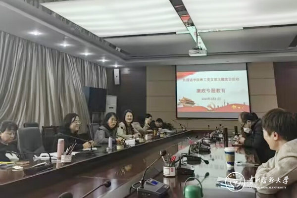 3月11日,校党委委员、副校长、党委组织部部长蒋红梅参加外国语学院教工党支部“廉政专题教育”主题党日活动。活动由教工党支部书记张娅主持。