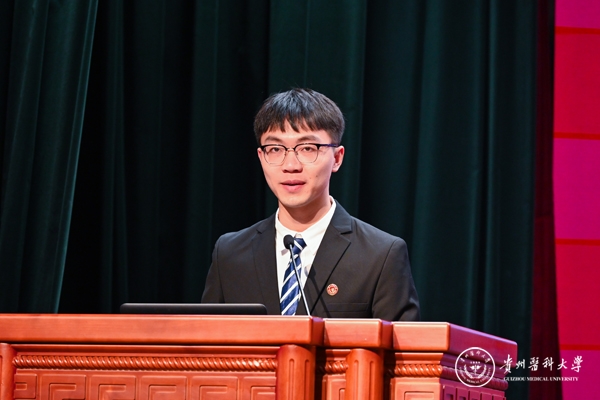 “协和班”2022级学生代表赵杨发言,他表示,作为新时代的“协和人”“贵医人”,必将承继协和基因,传承协和传统,做一粒努力向上的协和“好种子”,潜心钻研求上进,勇攀医技最高峰,用扎实的医学知识、技能守护好人民群众身心健康。