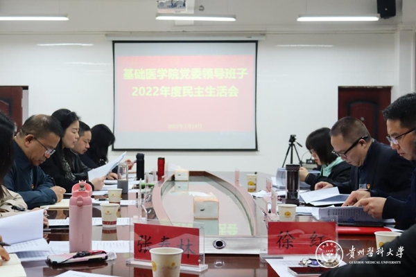 3月24日,基础医学院党委2022年度民主生活会在务本楼二楼会议室召开。校党委委员、副校长曾柱出席,学校第三督导组组长杨毅到会指导。会议由学院党委书记肖绚主持,学院领导班子、各职能科室负责人、各党支部书记、教研室、实验室负责人、教师代表、学生代表参加。