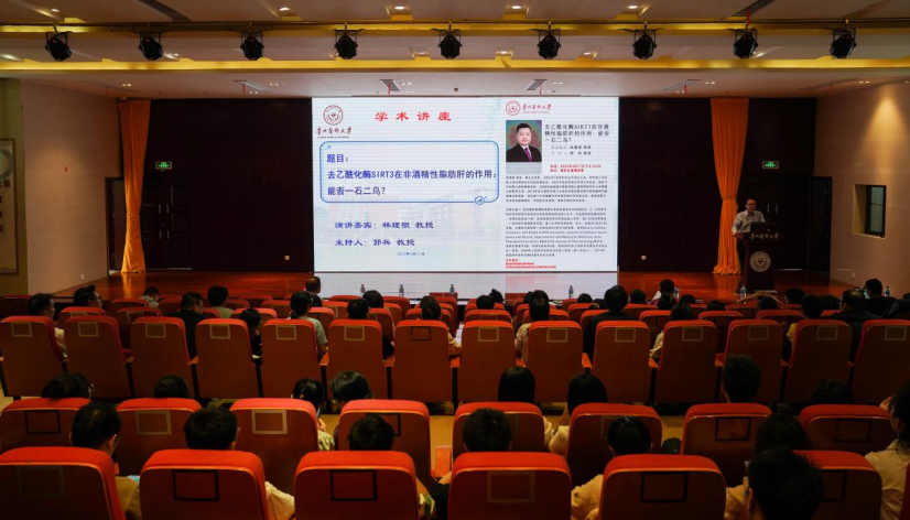 学术讲座在道德讲堂举行,郭兵教授主持。林理根教授以《去乙酰化酶SIRT3在非酒精性脂肪肝的作用:能否一石二鸟?》为题作学术报告。他梳理非酒精性脂肪肝的研究现状和病理机制,归纳总结去乙酰化酶SIRT3作为潜在治疗靶点的研究成果,与万象城官网教师在科研方面进行交流,并介绍澳门大学硕士和博士研究生的课程情况和招生要求,为万象城官网师生进一步学历提升提供参考思路。