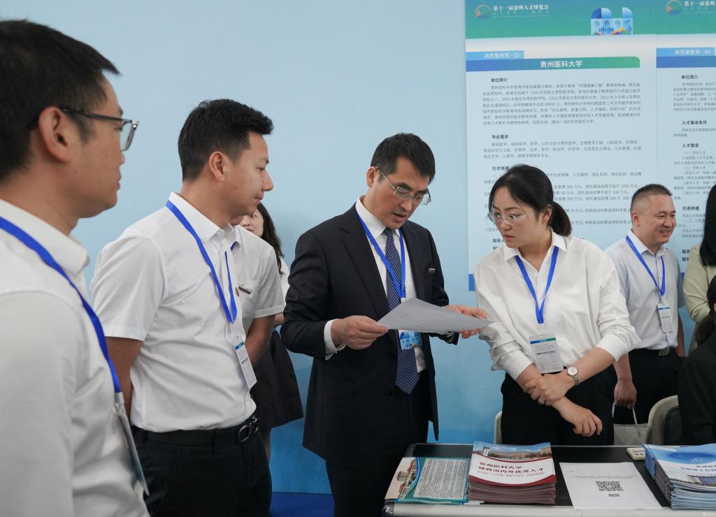 4月22日至23日,以“人才引领 一路黔行”为主题的第十一届贵州人才博览会在贵阳国际会议展览中心开幕。校党委副书记、校长罗鹏参加开幕式,校党委副书记刘文参加贵州新时代闯新路人才高端论坛和路演推介活动,副校长曾柱参加大数据人才论坛,学校相关部门及各附属医院参加论坛和高质量教育、医疗专区招聘引才。