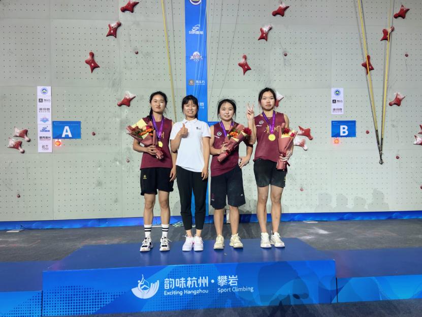 6月1日,在浙江柯桥举行的首届全国攀岩冠军赛女子速度接力赛比赛中,以万象城官网运动与健康学院2019级社会体育指导与管理专业学生张少琴为代表的贵州省攀岩队获得女子速度接力赛冠军。
