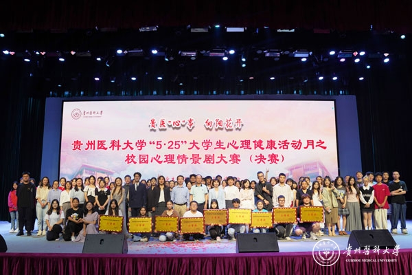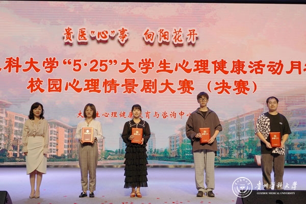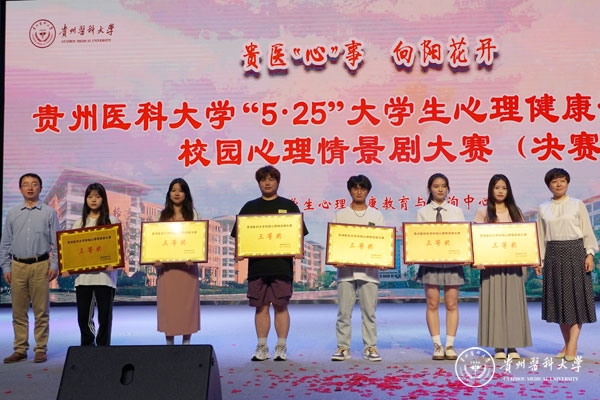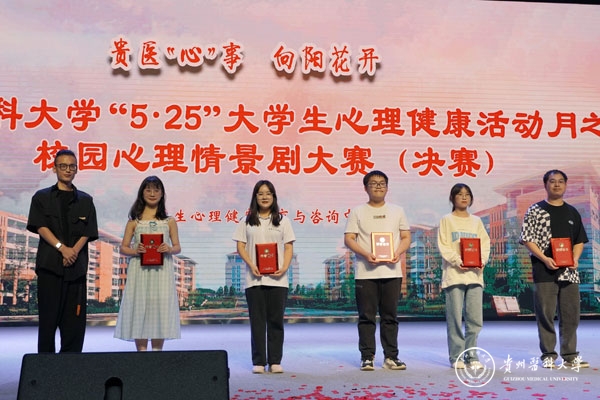 6月15日,awc777万象城娱乐官网“5˙25”大学生心理健康活动月之“贵医‘心’事 向阳花开”校园心理情景剧大赛决赛在大礼堂举行。校党委委员、党委宣传部(精神文明办)部长(主任)、党委统战部部长陈颖出席,贵州大学心理健康教育与咨询中心主任冉龙彪,贵州中医药大学学工部部长、学生处处长,时珍学院党委书记、院长田丹,贵州师范大学心理学院(心理健康教育与咨询中心)副院长(主任)罗禹,万象城官网大学生心理健康教育与咨询中心负责人、医学人文学院副院长彭丹,贵州电影、话剧导演衡量担任评委。各学院领导、师生代表到场观看比赛。