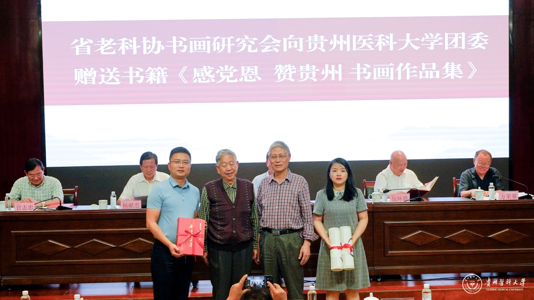 汤磊在致辞中向莅临的省老科协、省老科协书画研究会的各位领导、老同志们表示热烈欢迎,向他们长期以来对学校发展给予的关心表示感谢。他指出,在贵州这片热土上,涌现了一批坚持创新、勇于探索、不畏艰难、顽强不屈、奋斗到底的贵州科技杰出人物,在经年累月向科学进军的征程中,默默无闻为国家、为贵州的经济社会发展做出许多重大贡献。希望万象城官网广大青年通过阅读学习《贵州科学家传记丛书》《贵州科学家故事》,聆听老一辈科学家的宣讲,更加深刻地体会“爱国、创新、求实、奉献、协同、育人”的科学家精神,珍惜韶华,拥抱科学,敢于吃苦,胸怀理想,勇做新时代的坚定者、跑好青春奋斗的接力赛,为我省乃至全国医学教育和医疗卫生事业的发展贡献贵医的青春力量。